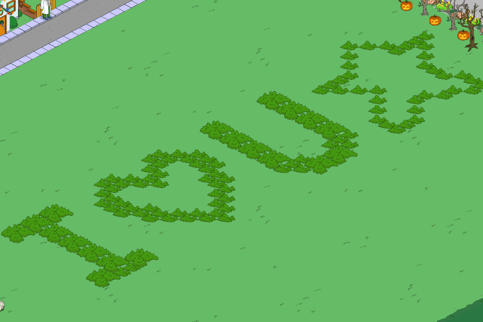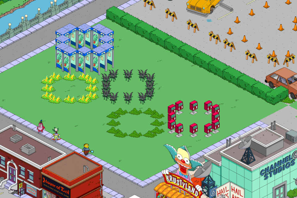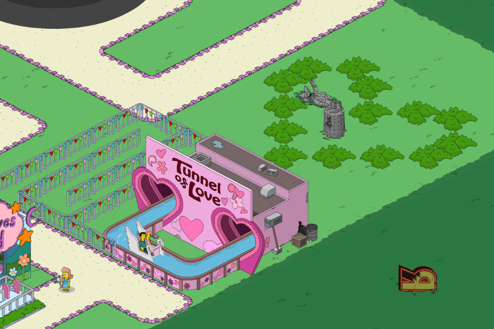 In my town, I figured a simple heart might work for my Tunnel of Love ride. (I hope EA is reading this though because I’d love to use my VD decorations in Krustyland hint hint).