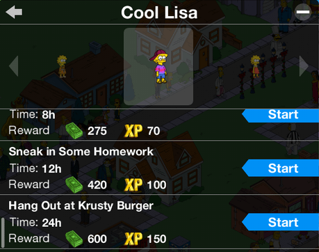 Cool Lisa is the first Friendship Prize to come with a FULL questline and a full set of tasks. Cool Intentions is a 6 part quest that will start when Cool Lisa is unlocked in your town. (We’ll detail the full walkthrough in another post) Here’s a complete list of Cool Lisa’s Permanent tasks in Springfield: