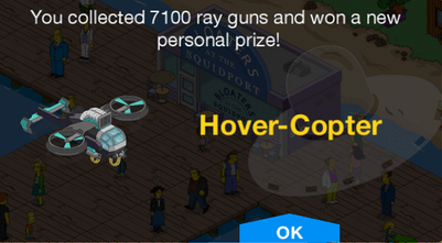 Once you’ve collected 7,100 Ray Guns the Hover-Copter will automatically be awarded to you and you’ll see this popup: