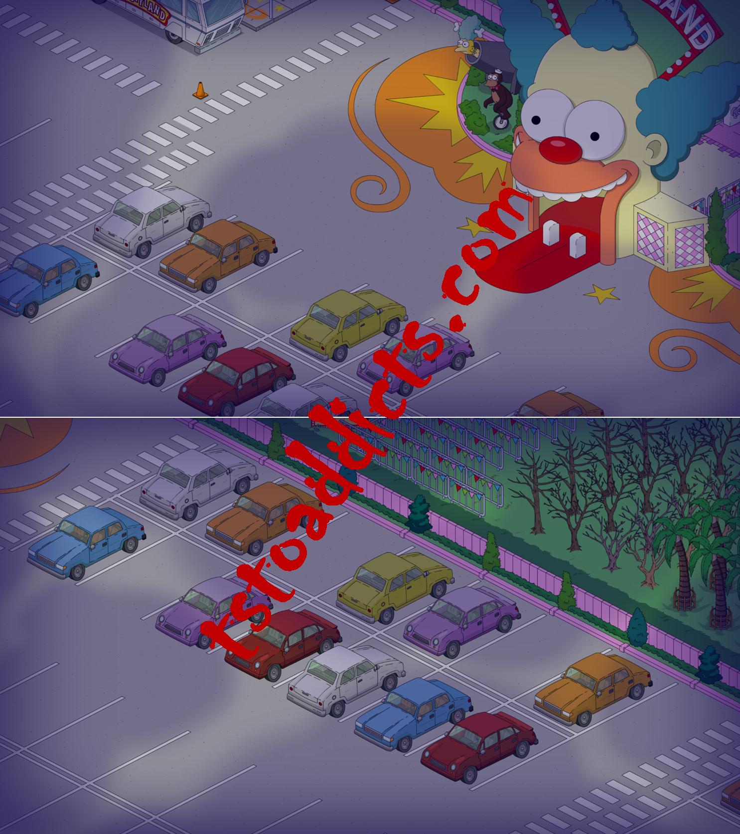 Krustyland has cars in the parking lot. WHAT??!! BIG DEAL?? 🙁 Ok…fine…maybe this just only got me excited. Pssssh. Whatever. I am gonna just go back to my lil world and enjoy the fact my Krustyland looks like it is actually in use now. 😛