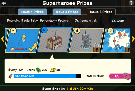This Event is broken up into 3 Issues, with each Issue containing part of the story. To help you move along with the event you’ll get several prizes per Issue. Each prize will either be something fun for Springfield or something to help you move along in the event. For the Third Issue you’re tasked with collecting Crab Juice (